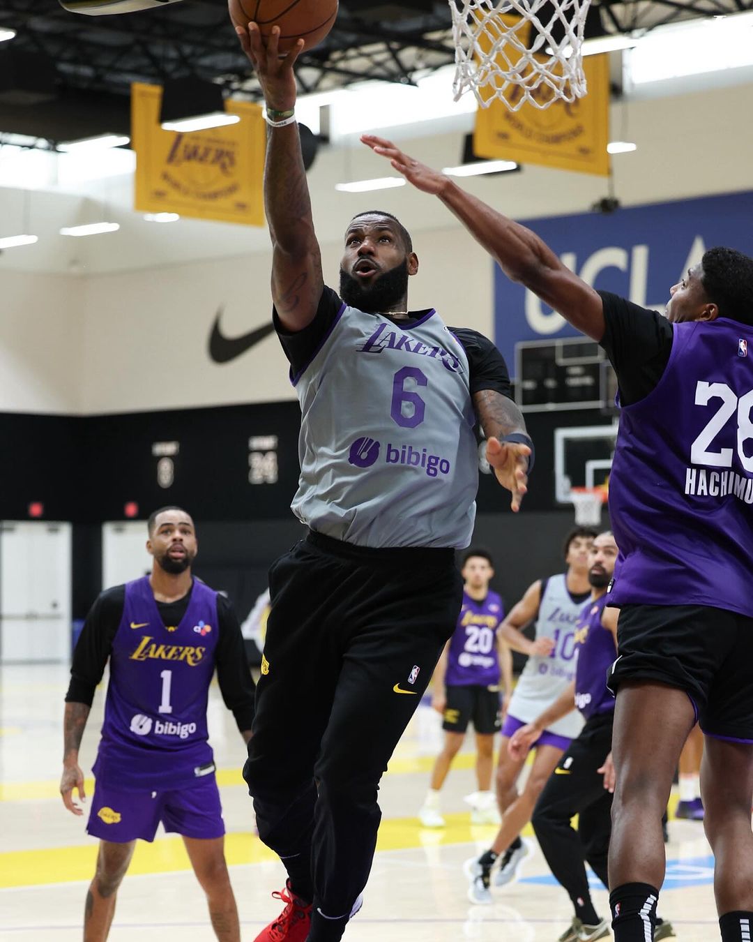 湖人训练营最后一天,湖人全队照常训练,期间詹姆斯上演单臂劈扣,浓眉展现出色的防守;全队在总冠军奖杯下训练,训练后全队碰拳。