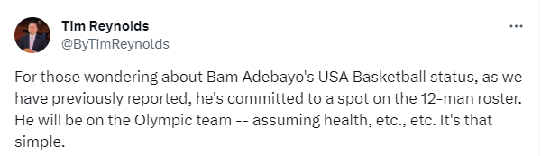 2020年巴黎奥运会,美国男篮最强复仇阵容呼之欲出,据报道,阿德巴约将占据美国男篮12人大名单一席,只要他保持健康,他就会为国出战奥运会。