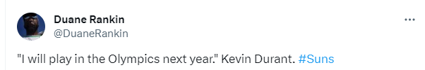 在太阳媒体日上,杜兰特直接表态:我将参加明年的巴黎奥运会。
