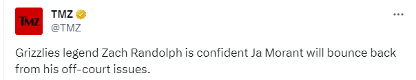 谈到莫兰特因持枪被禁赛25场,扎克-兰多夫表示:我告诉了我的小兄弟莫兰特,我们都经历过很多事情,当我打球时没有社交媒体,他会没事的,这就是成长的烦恼。莫兰特很有韧性,他会反弹的,他会反弹的。