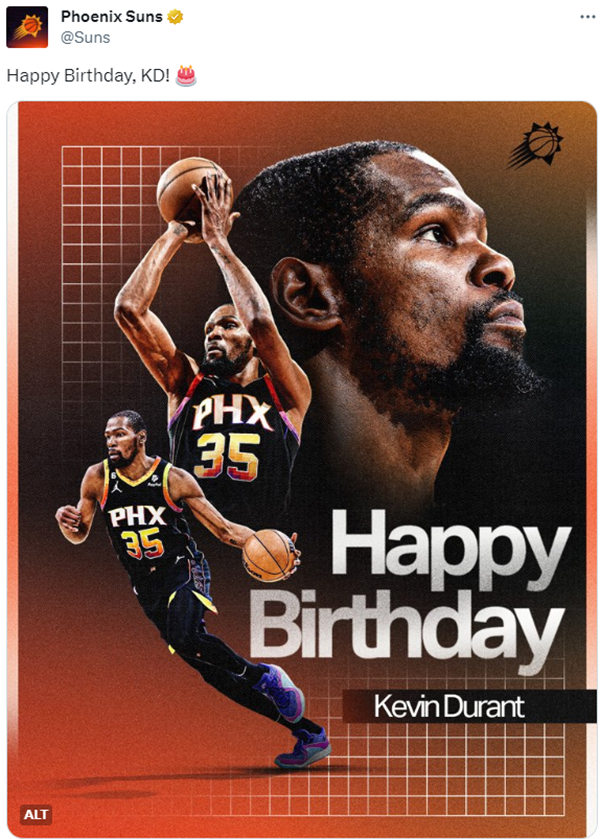 杜兰特35岁生日快乐!NBA和太阳官方祝贺 美媒晒其历史唯一成就