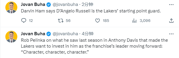 谈到今夏与浓眉完成续约,佩林卡表示:这是我们对互相许下承诺的印证,他将成为领导者和最努力的球员。这个休赛期他的训练量是加盟湖人以来最多的,比之前任何一个夏天都要多。