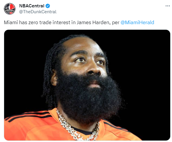 热火对哈登毫无兴趣!76人巨星处境尴尬:热火想要补强后场也无意他