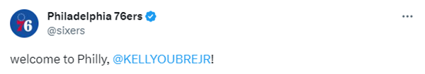 来源:24直播网09-27 14:4324直播网09月27日讯 ,费城76人官方正式宣布签约乌布雷,据悉他们双方签下一份1年底薪合同,乌布雷将身穿76人9号球衣,辅佐恩比德和哈登冲击总冠军。
