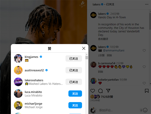 湖人官方晒训练合影!詹姆斯感谢里夫斯 点赞祝贺范德比尔特获休城日