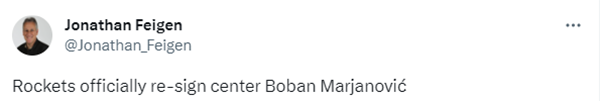 22-23赛季,博班为火箭替补出战31场比赛,场均仅上场5.5分钟,拿到3.3分1.9篮板;生涯至今,博班先后为马刺、活塞、快船、76人、独行侠和火箭效力,生涯第9年重返火箭。