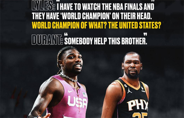 此前美国“飞人”莱尔斯曾公开表示NBA总冠军不等于世界冠军,如此言论瞬间引热议,当时NBA众星强势回应,杜兰特表示:谁来救救这个兄弟?布克回应一个捂脸的表情;利拉德表示:搞什么鬼;泰勒-希罗则表示NBA是世界上最好的联赛,这就是为何NBA总冠军是世界冠军。