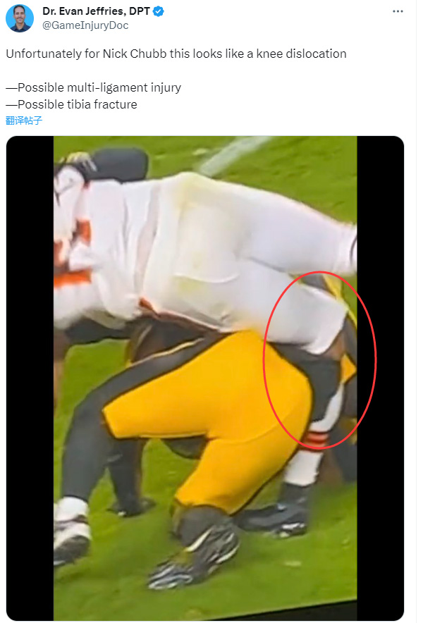 医学专家Evan Jeffries表示查布可能遭遇多韧带损伤,还可能遭遇胫骨骨折的大伤。