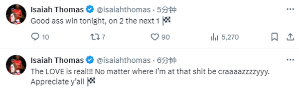 虽然枯坐冷板凳,但小托马斯的心态很好;太阳大胜马刺赛后,小托马斯发推写道:爱是真是的,不管我在哪儿都很疯狂,感谢大家;小托马斯还写道:今晚是一场很棒的胜利。