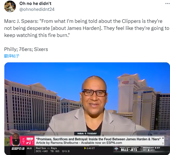 来源:24直播网09-07 10:4624直播网09月07日,名记Marc J. Spears在节目中透露,目前快船并不急于追求哈登,他们打算继续看戏,等着打劫76人;Spears表示:从我被告知的情况来看,快船对于这个情况并不着急,他们想要看(76人与哈登之间的)火继续燃烧下去,然后等一个用几毛钱零钱换百元大钞的机会。