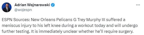 鹈鹕新星左膝半月板受伤!医学专家详解伤情:最严重伤停4-6个月