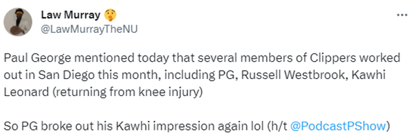 乔治透露小卡膝伤痊愈:已和威少小卡合练 吐槽快船飞行里程令人恶心