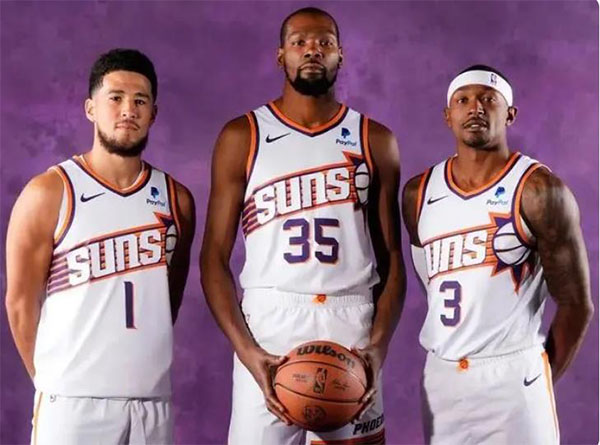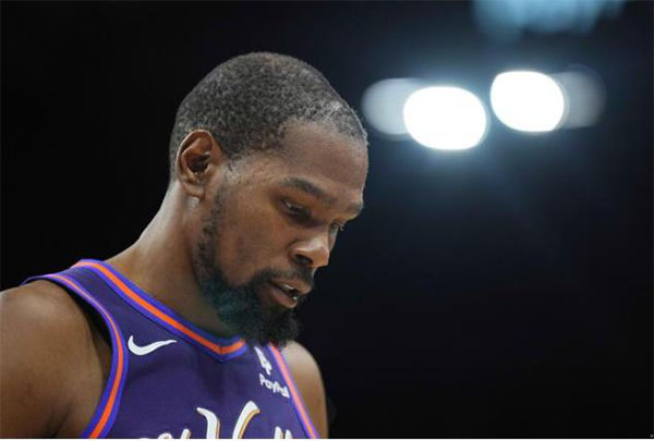 另外的杜兰特和比尔这对双子星,本场比赛打的是非常低迷,特别是杜兰特,三节12中3,拿到了15分2篮板5失误,杜兰特已经很久没有如此低效的表现了,这或许也是杜兰特很沮丧的原因。