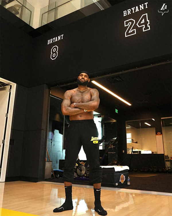 湖人官方还晒出了詹姆斯在科比8和24号码下的训练照,并配文写道:“每天都在激励我们,曼巴永恒。”