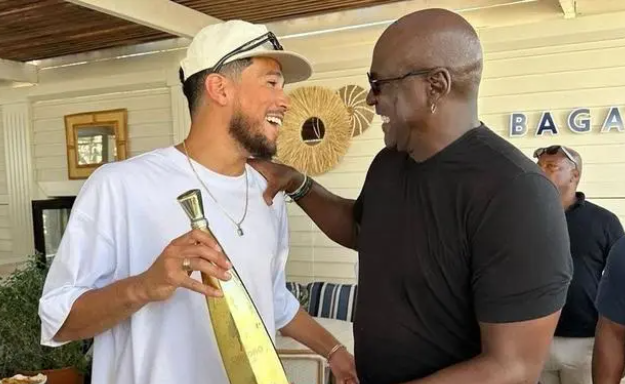 今夏乔丹出售了自己手中的大部分黄蜂股权,几乎套现30亿美元,退居二线成为黄蜂队小老板;此前布克曾在意大利度假时遇到乔丹,两人开怀畅谈以及一起享受美酒。