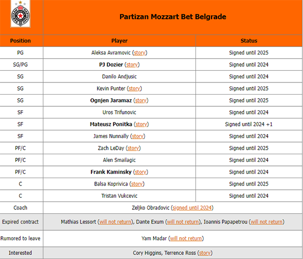 32岁罗斯目前没有签约任何球队,他可能离开NBA并加盟塞尔维亚号码;此前PJ-多齐尔和卡明斯基均在今夏加盟了贝尔格莱德游击队,他们都和该队签约至2024年。