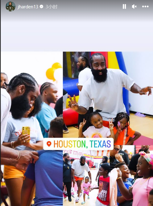 哈登结束中国行,返回美国后在休斯顿举办JH Town Weekend活动,哈登先是在休城举办了一场盛大的红酒派对,哈登身穿黑色西装并且戴着墨镜,其他人也是如此打扮;另外哈登还在当地做慈善,为当地的学生捐赠书包以及与学生一起互动合影。