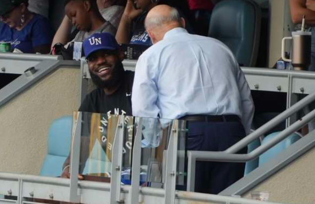 詹姆斯观战道奇队比赛:脱帽致敬疯狂庆祝 现场获赠10万美元家庭基金
