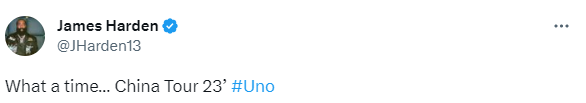 哈登大骂莫雷后更新社交媒体,晒出多张中国行的照片,配文写道:多么美好的时光,2023年中国行。