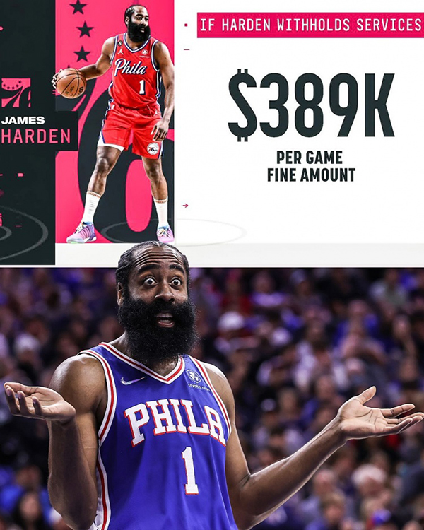 哈登拒绝出战罚款曝光:每场被罚38.9万美元 或重演西蒙斯闹剧