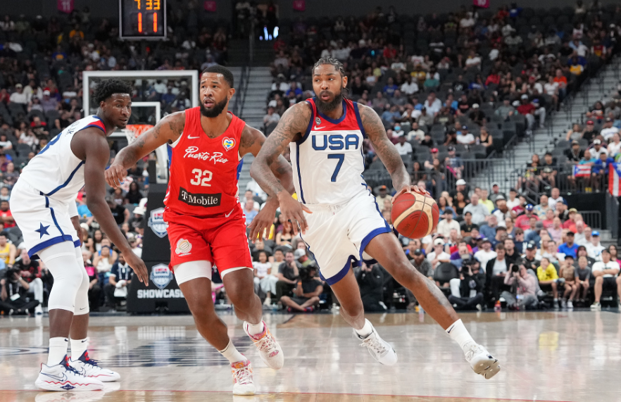 与波多黎各一战,美国男篮安排布里奇斯、英格拉姆、爱德华兹、布伦森和小贾伦-杰克逊,赛前里夫斯获得全队最高的欢呼声;比赛正式开打,美国队2-6开场后打出8-2攻势反超比分,之后两队僵持,第一节3分14秒,湖人新星里夫斯替补上场,现场球迷为他鼓掌欢呼,里夫斯上场就得分——命中底角三分以及急停干拔,首节贡献5分。