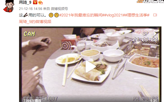 同时周琦还晒出了老板送给自己的鸡蛋灌饼,吐槽称这是不太正宗的鸡蛋灌饼,同时还赔上了咯嘣脆的音乐,周琦自然是不含糊,直接就吃了起来。同时周琦也给队友尝了尝,很显然队友对于这个梗了解的并不多,只是在认真的品尝美食。