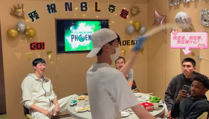 周琦和队友们聚餐,火锅店还给布置了“预祝NBL夺冠”,氛围感太强了。这个赛季的凤凰队人员强大,按照周琦直播的时候的言论就是队内有很多都是澳大利亚和新西兰的国手,实力也都不错,当然有希望夺冠了。