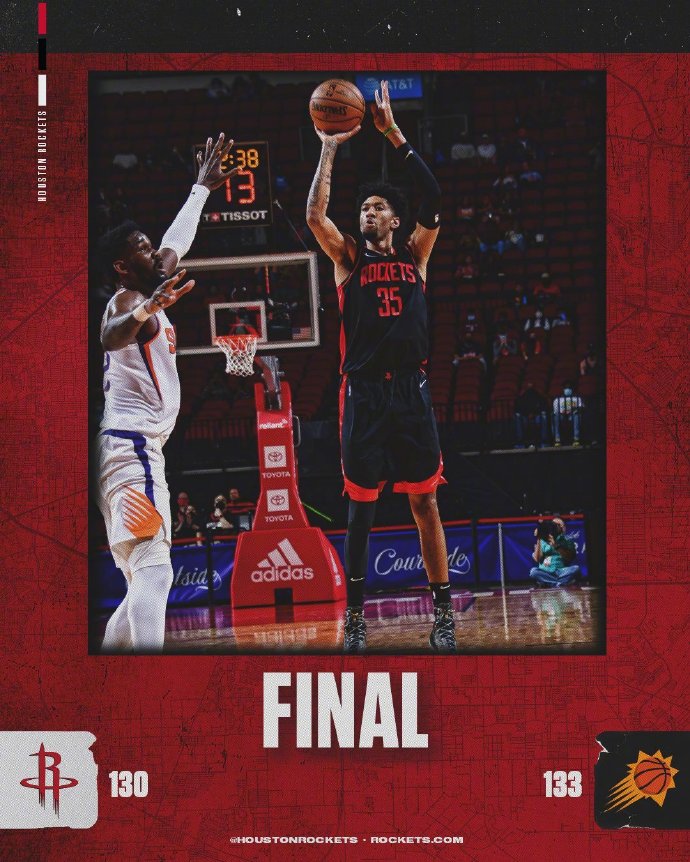 火箭(13-37):小波特20分9板8助,奥利尼克21分4篮板1助,伍德23分3篮板,斯特林-布朗16分3板2助,泰特18分7板5助,布拉德利6分3助,奥古斯丁11分6助