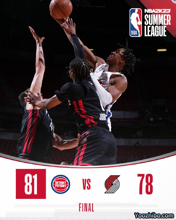 24直播网讯7月8日讯 NBA拉斯维加斯夏季联赛,开拓者今日对阵活塞,前者阵容以锻炼考察新人为主,而后者则是有多名主力年轻球员。比赛上来活塞就迅速进入状态,杜伦连续送出精彩暴扣帮助球队取得领先,首节结束时分差已经达到了两位数,次节双方的命中率都出现下降,半场结束开拓者依旧落后7分。易边再战,开拓者的状态有所回暖,末节逐渐将比分追了上来,比赛悬念保持到最后,关键时刻艾维连续得分帮助球队带走胜利,最终活塞险胜开拓者。