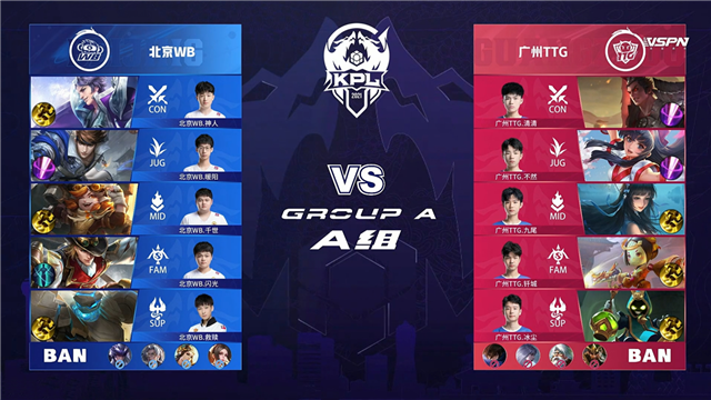 2分51秒,广州TTG橘右京。3分32秒,下路团,双方1换1,孙尚香拿下一血。4分50秒,北京WB破掉广州TTG上一塔,随后团战1换4。5分05秒,北京WB破掉广州TTG中一塔。7分33秒,广州TTG拿下暴君。10分16秒,北京WB拿下暗影暴君。10分58秒,北京WB先后破掉上、中二塔。13分40秒,中路团,北京WB打出2换3,不知火舞拿下双杀。15分01秒,北京WB拿下暗影暴君,广州TTG击杀马超并控下暗影主宰。18分45秒,北京WB击杀夏洛特,随后破掉广州TTG下高地。19分23秒,下路团,双方3换3。22分48秒,广州TTG打出1换2。23分40秒,广州TTG拿下风暴龙王。28分37秒,广州TTG拿下风暴龙王,随后团战夏洛特拿下三杀。29分09秒,广州TTG破掉北京WB水晶赢下比赛。