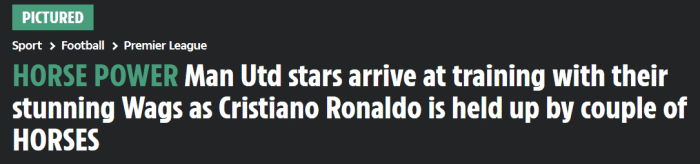 24直播网01月22日讯 据英国媒体《太阳报》报道,曼联球星C罗昨天抵达训练场较晚,是因为在路上被两位骑马的人挡住去路。
