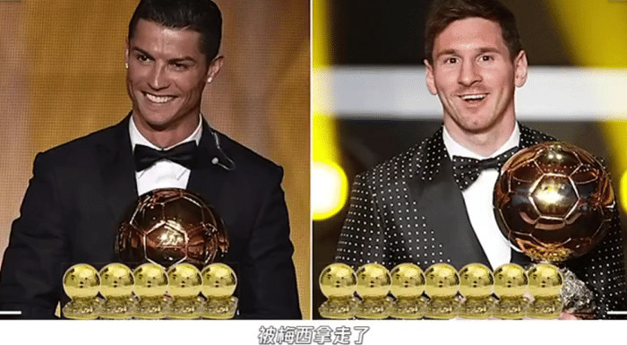 “因为我觉得他们两个同时代最伟大的巨星,他们两个人你很难说谁更强。因为梅西的队友跟他可能更加默契,所以我更喜欢C罗的一个原因是因为我觉得他有那么一两个金球被梅西拿走了(大笑),为他感到委屈。”