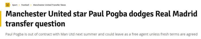 24直播网讯 据英国媒体《曼彻斯特晚报》报道,法国球星博格巴在接受西班牙六台连线采访时,对加盟皇马的问题避而不谈。