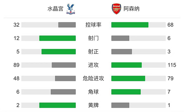 第95分钟,阿森纳前场界外球掷出,佩佩得球后一路杀入禁区右侧,他内切晃开空档后起脚低射锁定胜局,阿森纳3-1水晶宫。