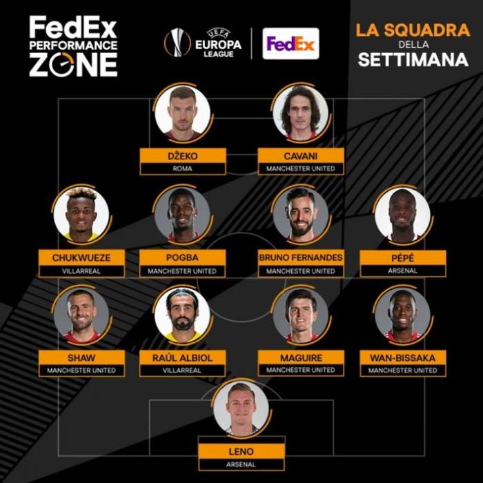 中场:楚克乌泽(比利亚雷亚尔)、博格巴(曼联)、布鲁诺-费尔南德斯(曼联)、佩佩(阿森纳)