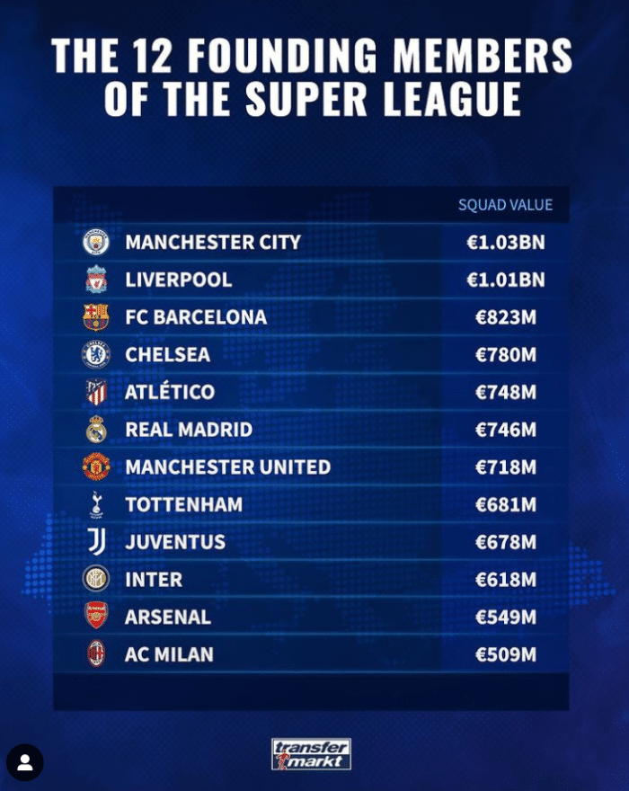 24直播网讯 德国转会市场日前盘点了欧洲超级联赛现有十二支球队的阵容身价,其中曼城排名第一,利物浦排名第二,巴萨排名第三。
