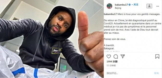 来源:24直播网03-05 20:5024直播网讯 北京时间3月5日凌晨,效力于中超豪门北京国安的外援巴坎布,在个人社交账号上发布消息,表示自己感染了新冠,目前正在接受隔离。巴坎布写道:“我在中国接受了检测,结果显示为阳性。目前我正在医疗中心接受隔离。我没有症状,有医院的员工看护着我。上帝保佑,目前一切都好。”