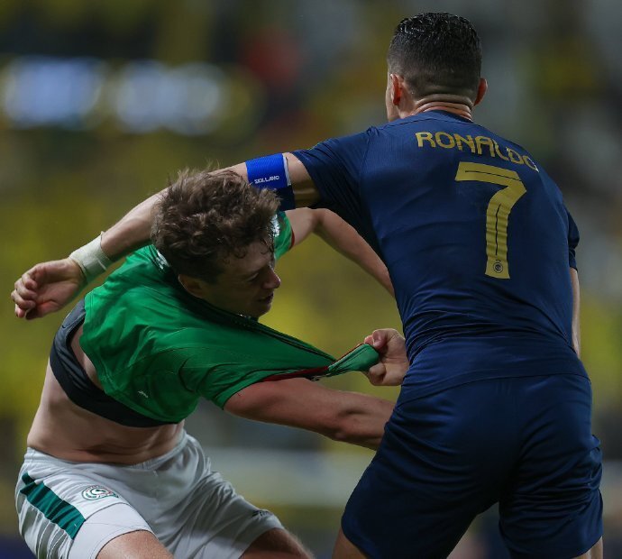半场补时阶段,塔利斯卡一度为利雅得胜利打破僵局。但慢镜回放显示,C罗在进攻中处于越位位置,而因为他对塔利斯卡的进球造成了间接帮助,因此该进球最终被判罚无效。