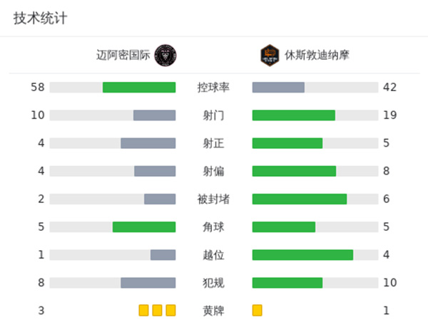 迈阿密1-2休斯顿 梅西缺阵 迈阿密全场被压制