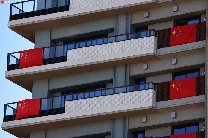 中国加油!奥运村挂上五星红旗,中国横幅霸气耀眼
