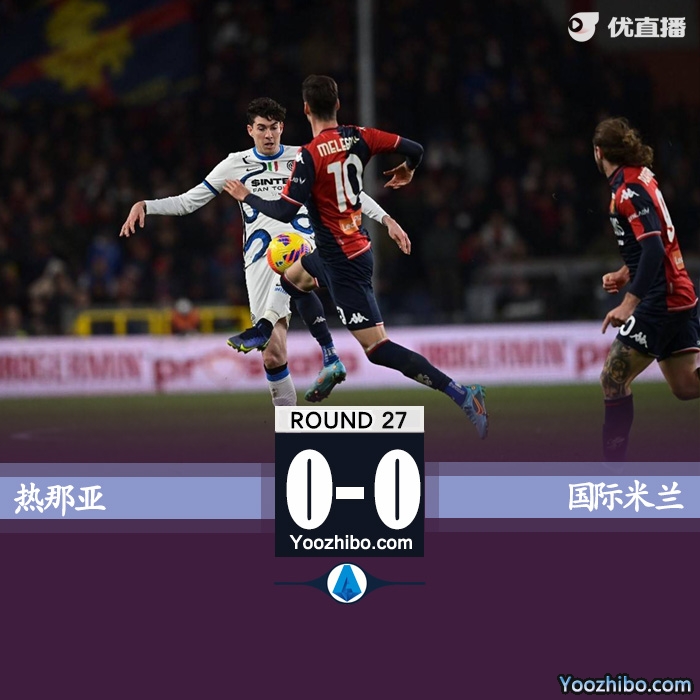 24直播网2月26日讯 北京时间2月26日凌晨4时05分,2021-2022赛季意甲第27轮展开角逐,国际米兰做客对阵热那亚。上半场双方均无建树,古德蒙德松错失一次单刀良机。国际米兰半场0-0战平热那亚。下半场两队也没有进球,丹布罗西奥有一次头球攻门击中横梁。最终国际米兰客场0-0战平热那亚,近4轮联赛无法取胜。在少赛一轮的情况下,国米继续排名积分榜第二,落后领头羊AC米兰2分。