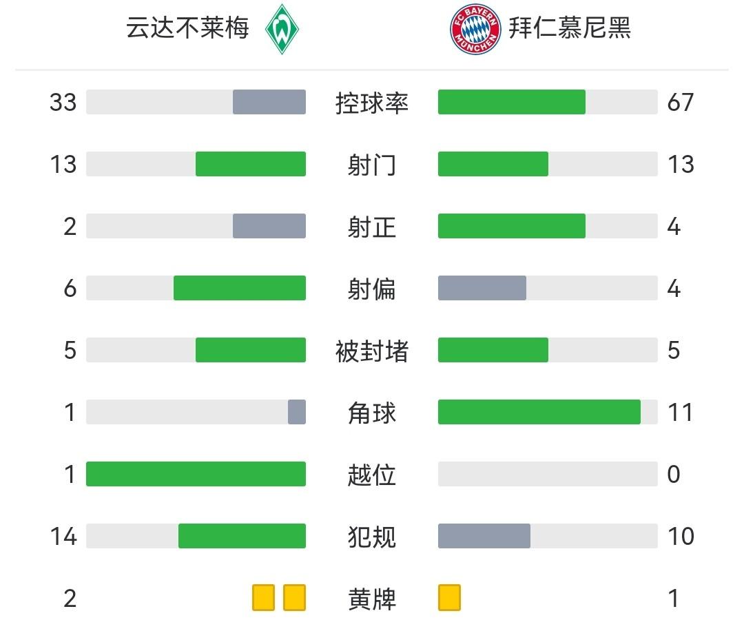 最终拜仁客场2-1战胜不莱梅,拜仁取得联赛两连胜。