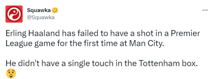 同时,哈兰德甚至在热刺的禁区内没有一脚触球。