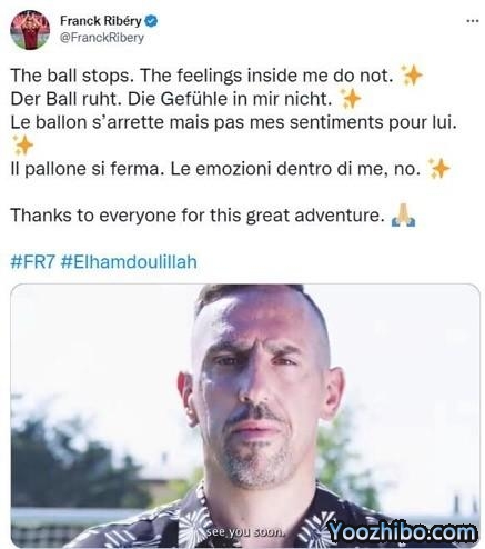 你的位置: 24直播网 足球直播 德甲 39岁拜仁传奇里贝里宣布退役,2013年金球惜败C罗留憾