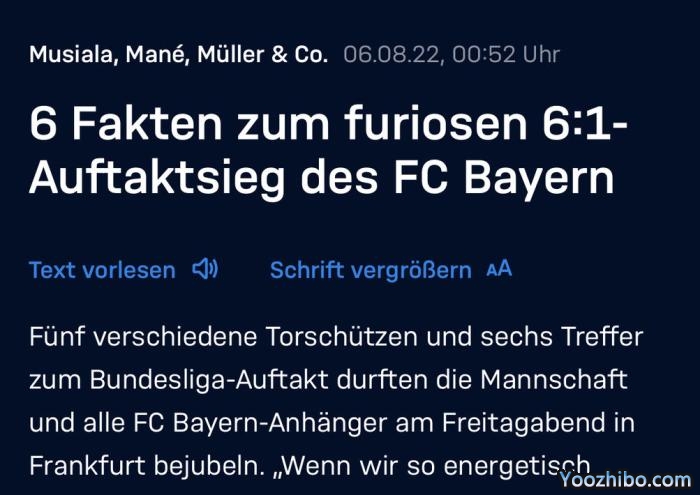 24直播网08月06日讯 今日,拜仁在德甲首轮作客6-1大胜法兰克福,拜仁官网也统计了多项相关数据: