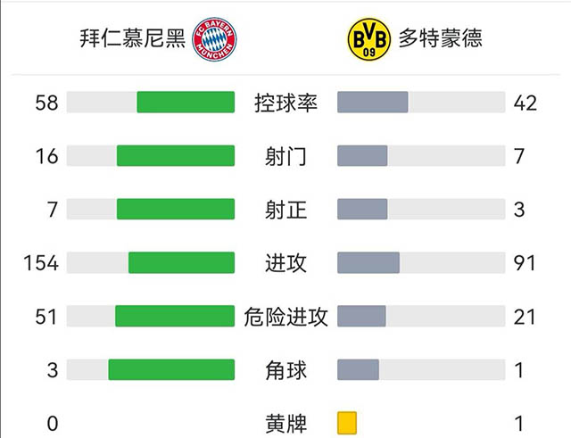 全场比赛结束,拜仁慕尼黑3-1战胜多特蒙德,拜仁获得德甲十连冠。