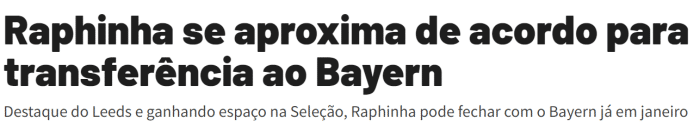 24直播网12月25日讯 据阿根廷媒体TNT报道,拜仁接近签下利兹联边锋拉菲尼亚,转会费约为5000万欧元。