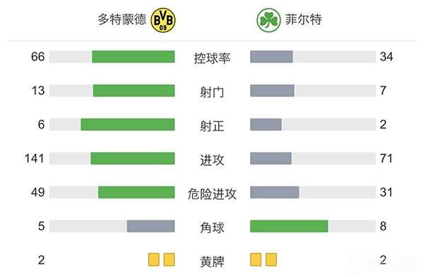 全场比赛结束,多特蒙德主场3-0完胜菲尔特。