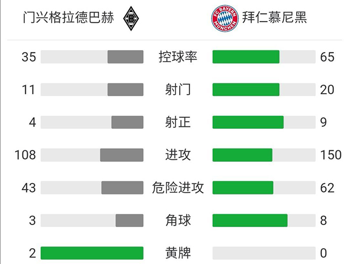 下半场补时5分钟,比赛第94分钟,科曼右路下底倒三角回传,禁区中路基米希无人盯防下推射偏出错过绝杀机会。全场比赛结束,拜仁客场1-1战平门兴,双方皆无缘新赛季开门红。