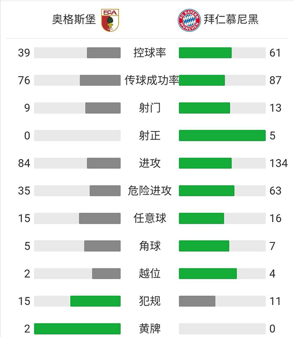 最终,奥格斯堡0-1拜仁慕尼黑。